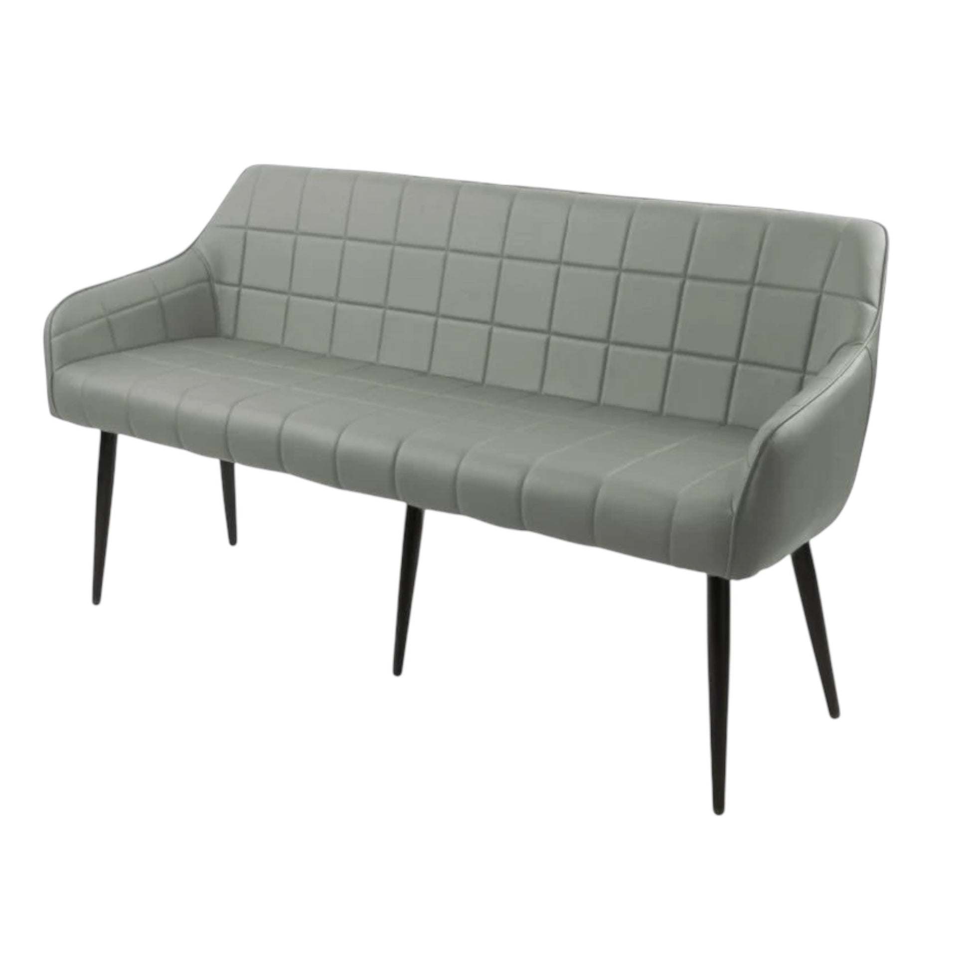 The popular bucket style Brance dining bench finished in a high quality faux leather with elegant cross backed stitched detailing. It comes finished with black metal legs and adjustable feet for easy levelling on any floor surface.