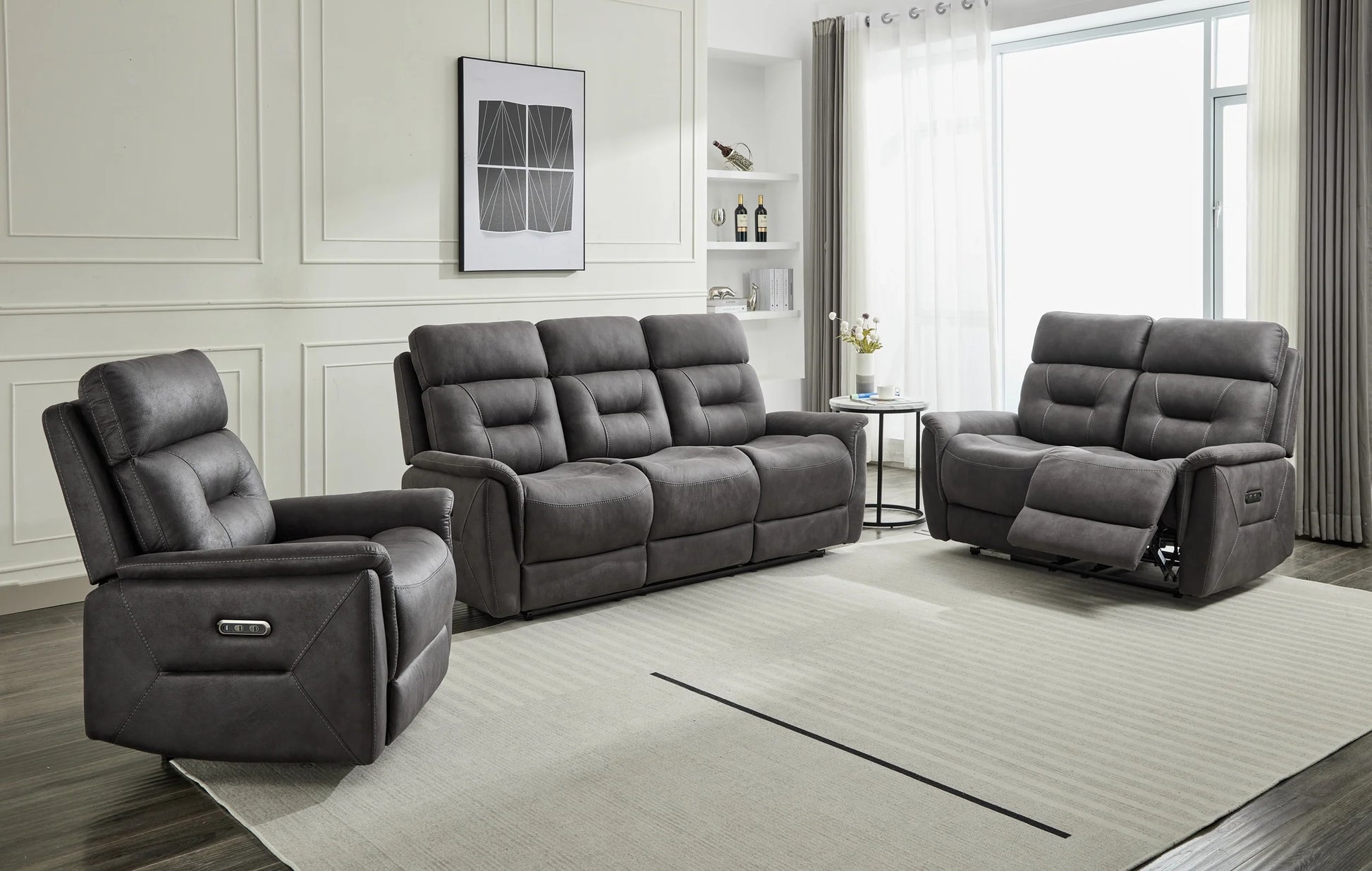 The versatile Rowan sofa collection featuring plush cushioning for enhanced comfort & style. The Rowan is a full electric power reclining sofa model finished in a fully wipeable fabric in two colour options of grey & chestnut brown. The Rowan features both USB & Type - C charging ports for at hand charging.