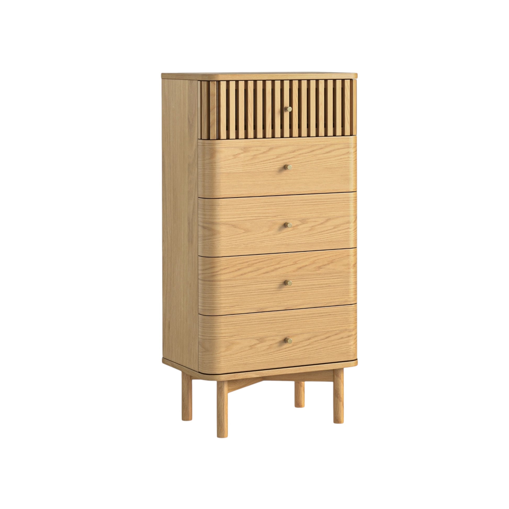 The best selling soho furniture collection available in two colour options of natural oak or dark walnut. The Soho features a distinguished, slatted design and is made from durable oak & oak veneers. This stunning range has a large range of matching pieces and is finished off with a matte brass handle on selected pieces.